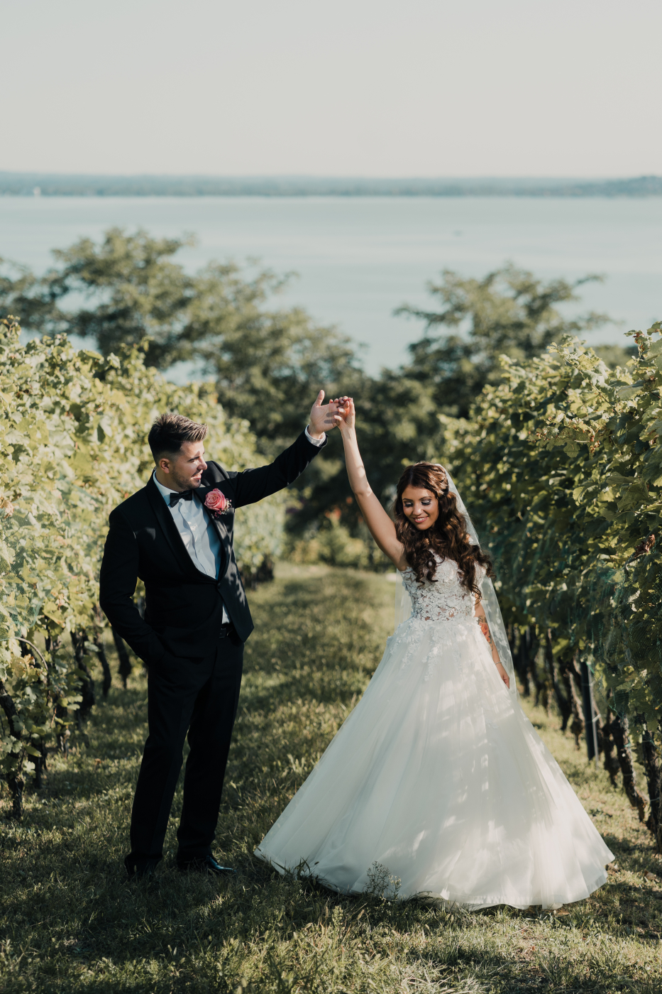 A fotós célja az volt, hogy a képek időtállóak, természetesek és érzelmekkel teli legyenek, a Balaton egyedülálló atmoszféráját hangsúlyozva. A kreatív fotózás során Betti & Krisztián megmutathatták stílusukat és személyiségüket, miközben a balatoni szőlősorok és a panoráma romantikus, filmbe illő hátteret adtak a fotóknak. A kikötői és hajós képek különleges dinamikát és eleganciát kölcsönöztek a sorozatnak, így a Balatonparti esküvői fotózás valóban teljes élményt nyújt a párnak és emlékezetessé teszi az esküvő napját.