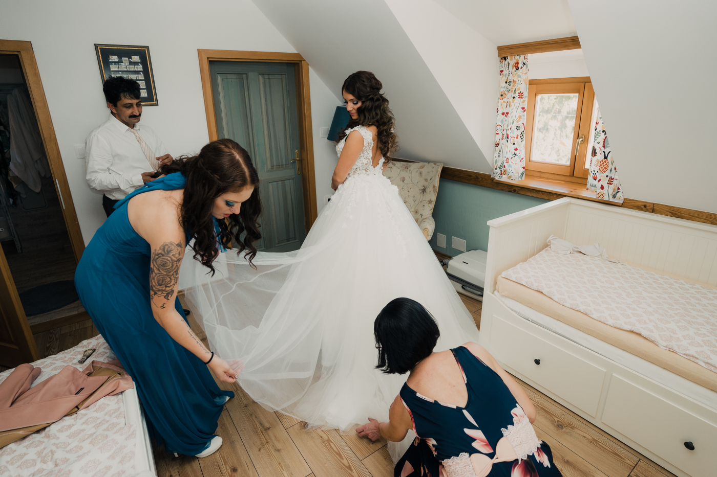 Az esküvői nap Betti & Krisztián számára a Balaton partján igazán különleges élmény volt, ahol minden részlet a romantikáról és a balatoni hangulatról szólt. A kreatív esküvői fotózás a balatoni szőlősorok között zajlott, lélegzetelállító panorámával a tóra, majd a párt a Balatoni kikötőben, hajók között is megörökítettük. A sorozat magában foglalja a készülődést, az esküvői szertartást, valamint a páros felszabadult, érzelmes pillanatait is.