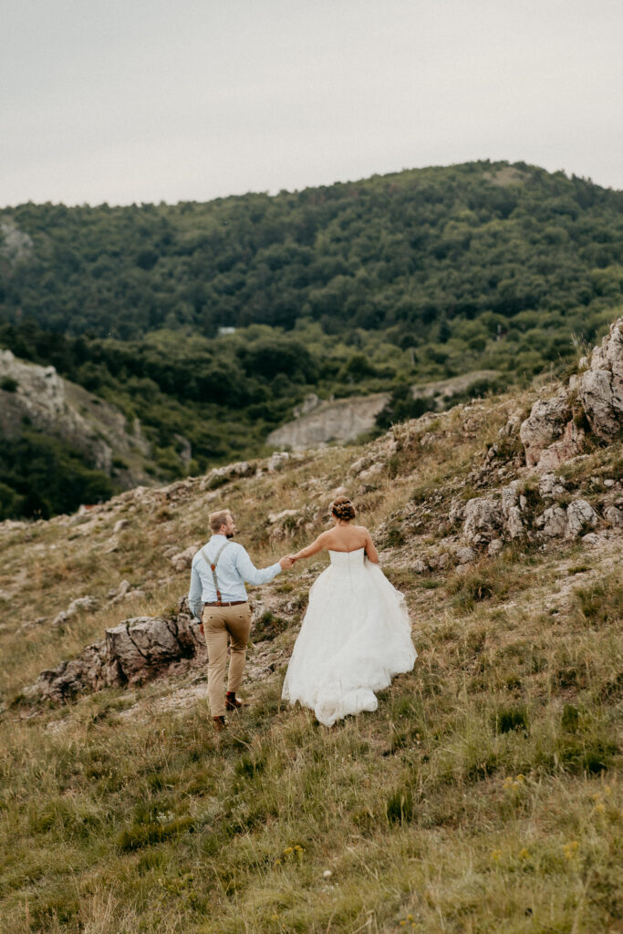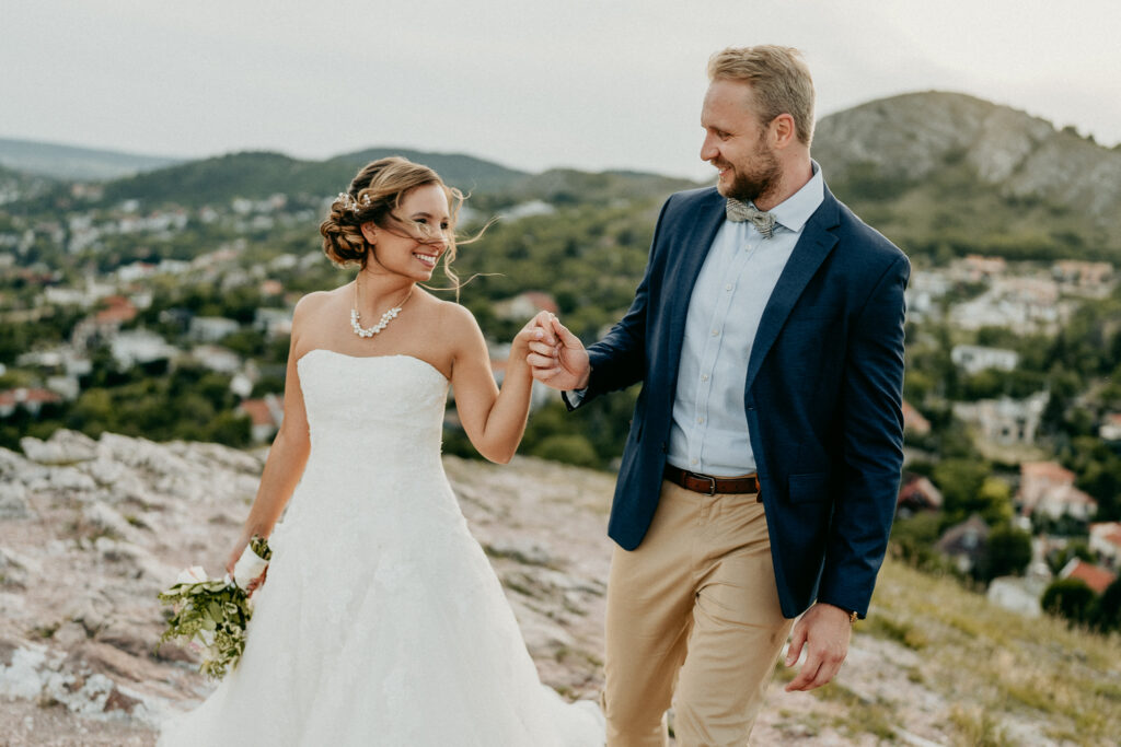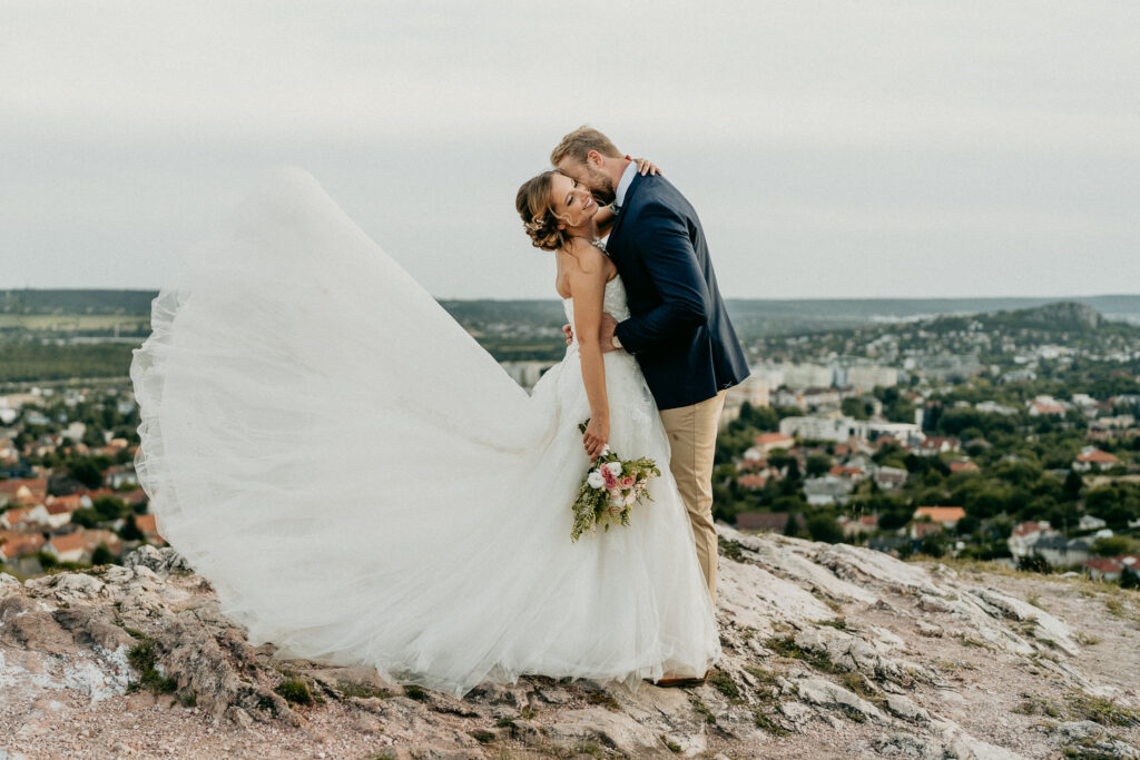 A kreatív fotózás során a párt változatos perspektívákból, természetes fényekben és művészi kompozíciókkal örökítettük meg, miközben a Kőhegy látványos panorámája és a környező táj segített a vintage, romantikus hangulat visszaadásában. A galéria fókuszában a pár portréi, részletfotók és kreatív beállítások állnak, kiemelve a nap különleges és időtálló hangulatát.